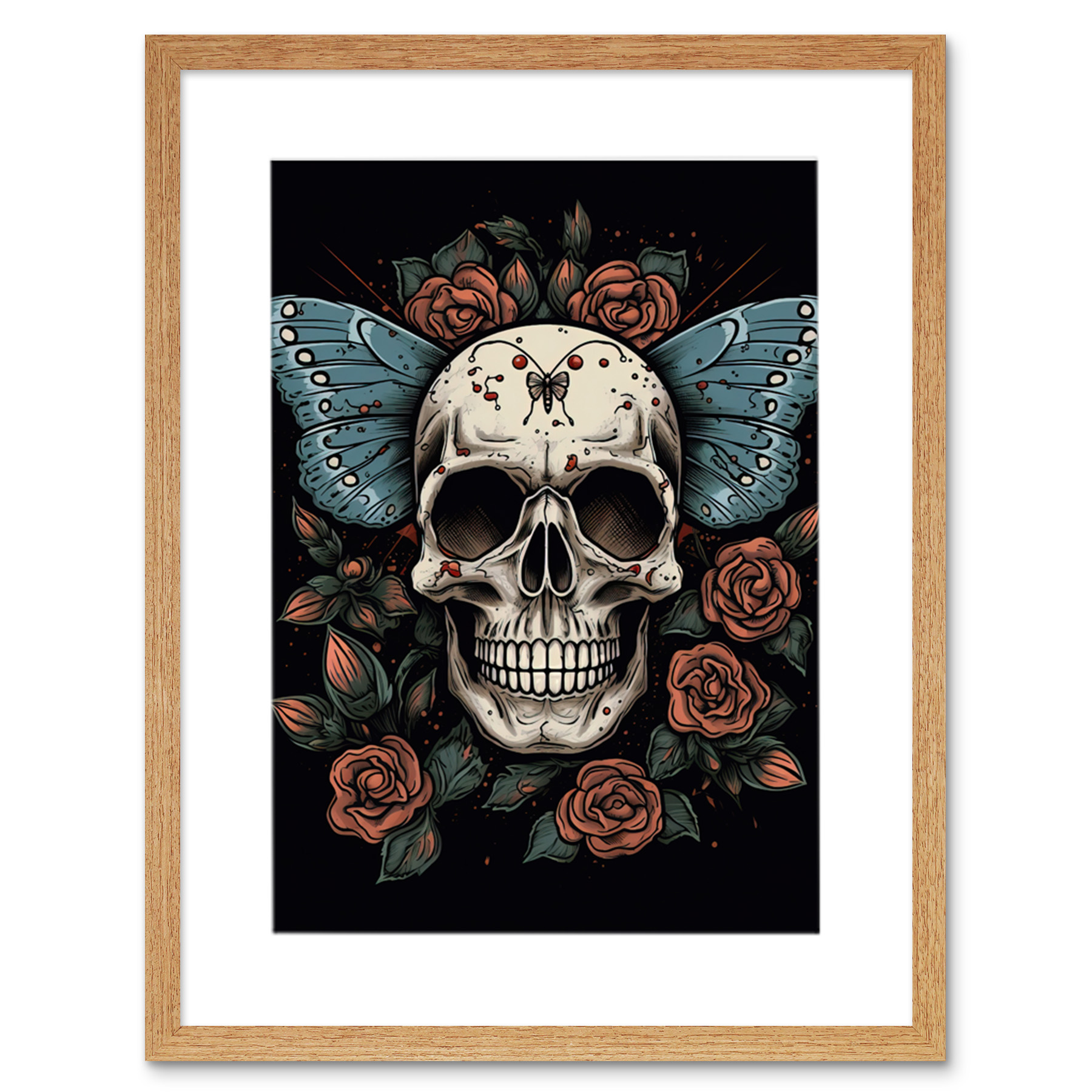 Skull Moth and Roses Tattoo Rockabilly Americana 50s Framed Wall Art Print A3 | ✔ Check At Store | £24.99 |