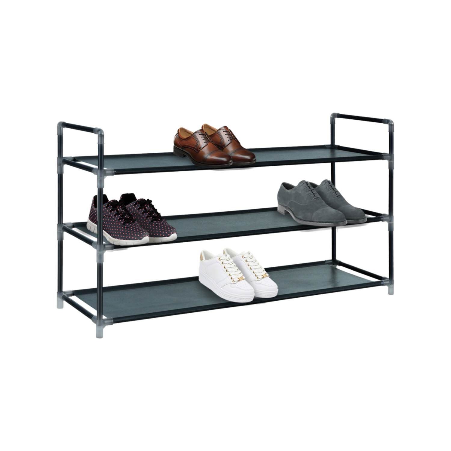 3 Tier Fabric SHOE Stand Storage Organiser RACK Compact Space Saving Black