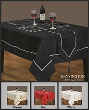 Matching Accessories Also Available - Placemats, Napkins, Table Runners. Luxury Quality Jacquard Table Cloths. Black,Burgundy, Cream, White, Latte, Silver, Forest & Christmas Red. Table Runners - 13x70".