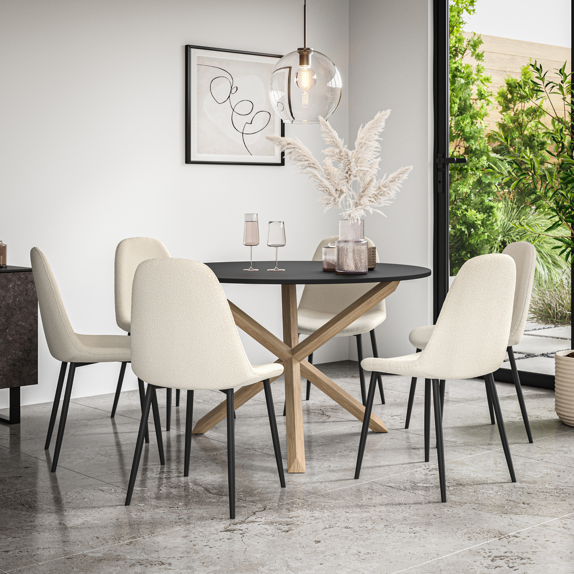 MALVERN ROUND DINING TABLE AND CHAIRS - BLACK TOP OAK BLACK LEGS + ANIKA CHAIR