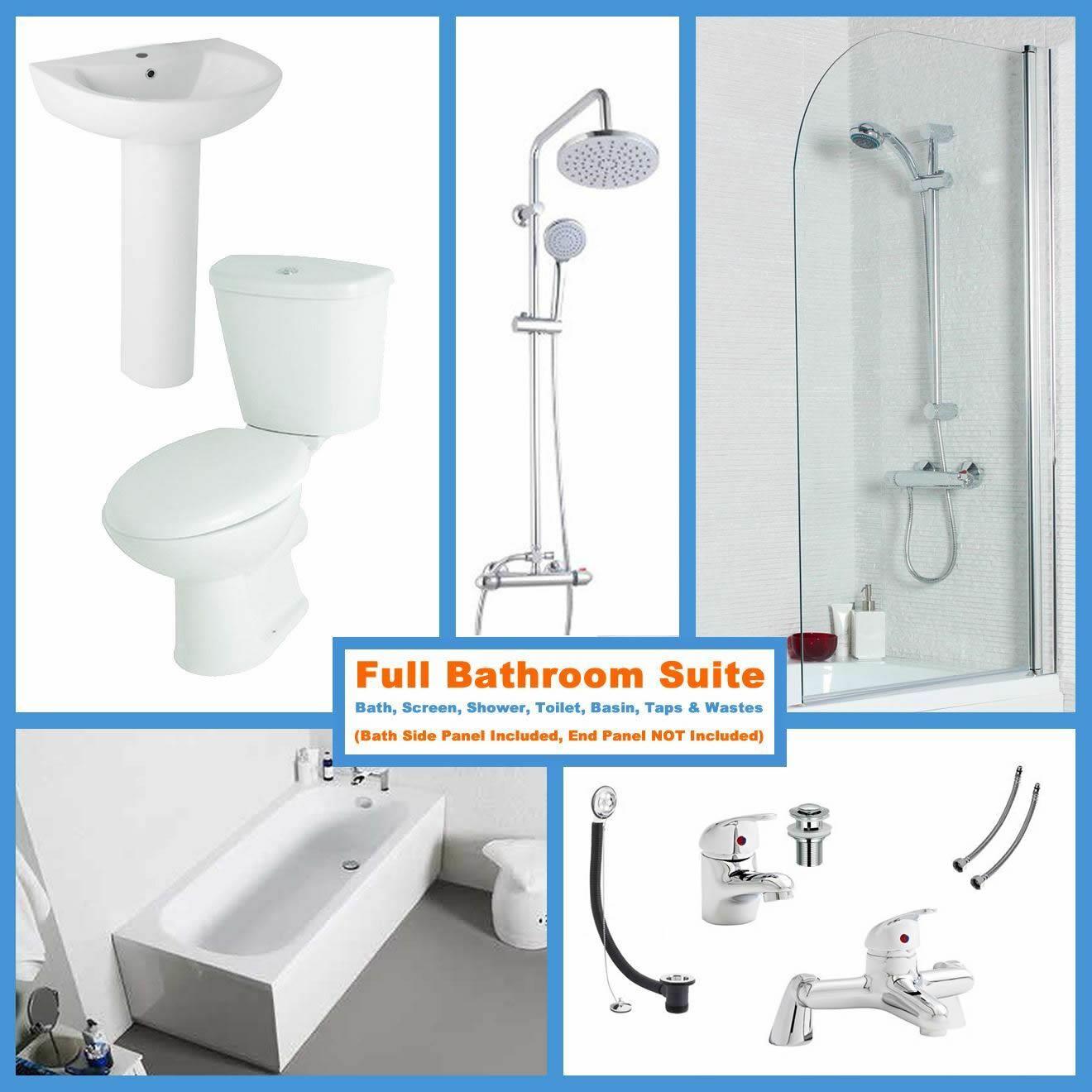 The bathroom suite includes a 1400 x 700mm Bath, Ceramic Basin, Toilet, Mono Basin Mixer(with waste and flexi Connectors) Bath Filler, Bath Waste, Shower & Bath Screen. For more information on our Bathroom Suites.