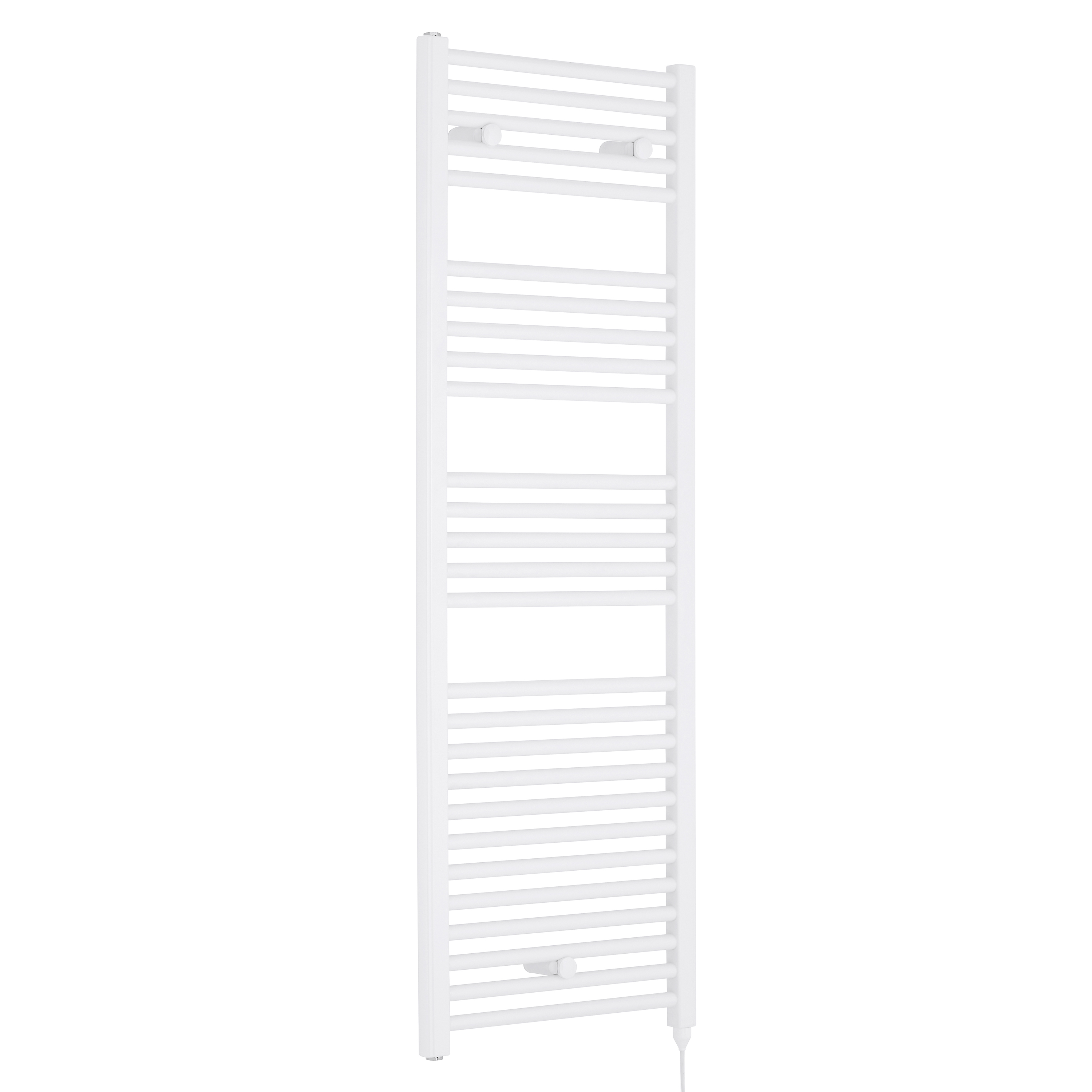 Balterley Electric Vertical Round Towel Rail – 1375mm x 480mm. This vertical towel rail blends functional elegance with convenience. Its tall ladder-style design provides ample room for towels while increasing heat output to keep your bathroom comfortably warm.