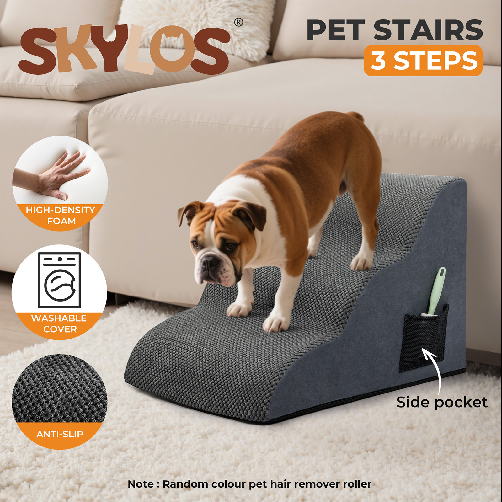 Skylos 3-Step Pet Stairs for Bed Sofa Dog Ramp High Density Foam Non-Slip Ladder