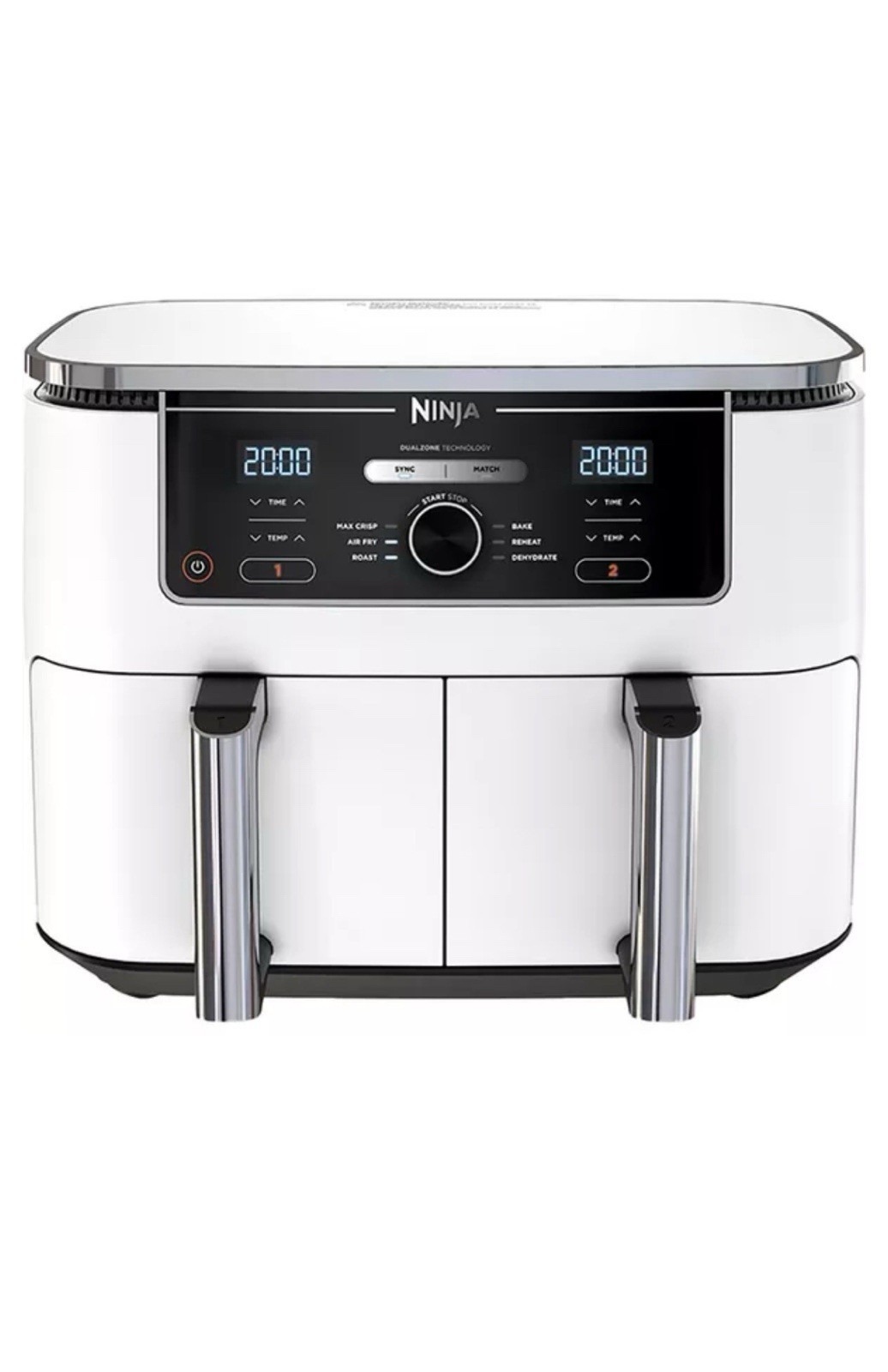 The Ninja Foodi Air Fryer MAX Dual Zone in White with a 9.5L capacity is a powerful electric appliance ideal for cooking a variety of dishes. With its dual zone design, you can fry, roast, bake, reheat, and more with ease. The air fryer features auto shut-off, air circulation, and dishwasher-safe parts for added convenience. The sleek white design and brand warranty of 1 year make it a reliable addition to your kitchen. Its easy-to-clean non-stick basket and programmable settings ensure hassle-free cooking and healthy meals for your family.