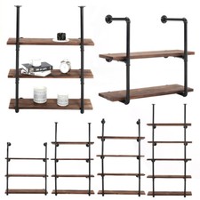 3/4/5 Tier Wooden Wall Mounted Shelves Hanging Pipe Floating Wood Shelf Rustic