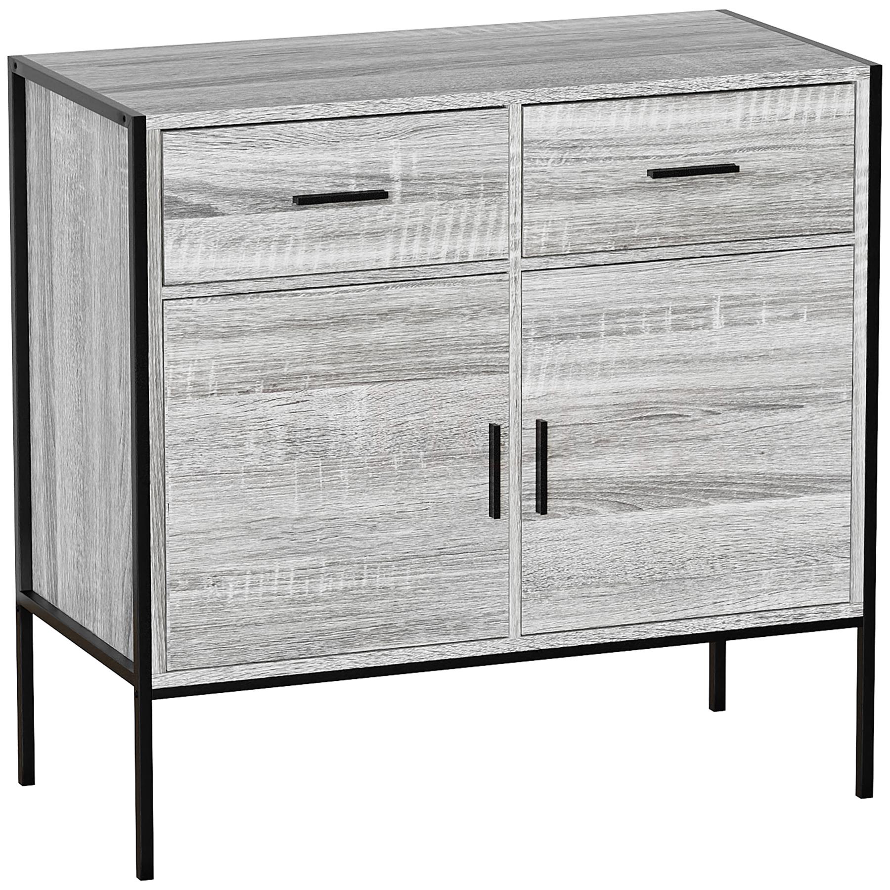 This sideboard embodies the essence of industrial design, adding a touch of contemporary style to your dining room, living room, or any space in need of storage and organization. With its two spacious drawers and two cabinet doors, this sideboard provides ample storage space for your dining essentials, linens, or other belongings.