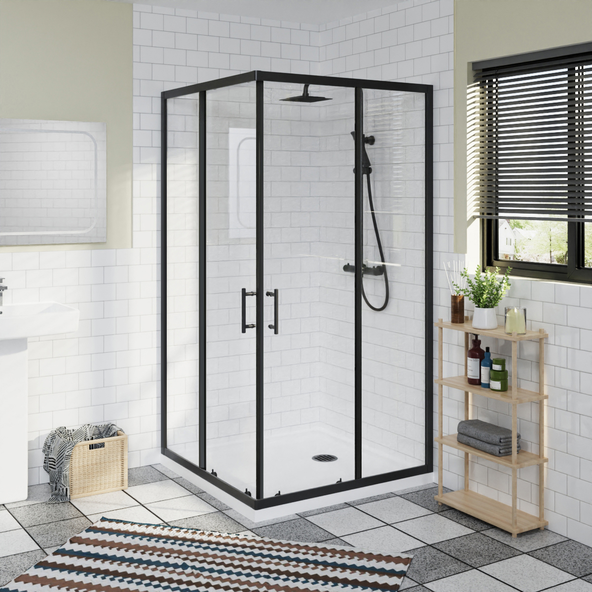 Quadrant shower enclosure with double sliding doors. Corner Entry shower enclosure with double sliding doors. Corner Entry Shower Enclosure. Galvanize top double wheels & bottom jump double wheels, smooth sliding and long lasting.