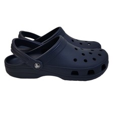 FREE UK DELIVERY Croc Classic clog, new but damaged and without tags. Navy colour. The shoes has been squashed, can still be worn but are bent out of shape as seen in the photos. “Slip into your favorite clog and enjoy a custom fit, water-friendly design and ventilated forefoot for breathability. The croslite™ footbed moulds to your foot for a custom fit with excellent arch support. Buy a pair of Crocs™ Classic, the perfect shoe for beach or boat Crocs™ Classic Details: - Ventilation ports add breathability and help water and debris drain away. - Fully molded Croslite™ material for signature Crocs comfort. - Heel strap offers a secure fit. - Easy to clean, and quick to dry. - Lightweight, non-marking soles.”