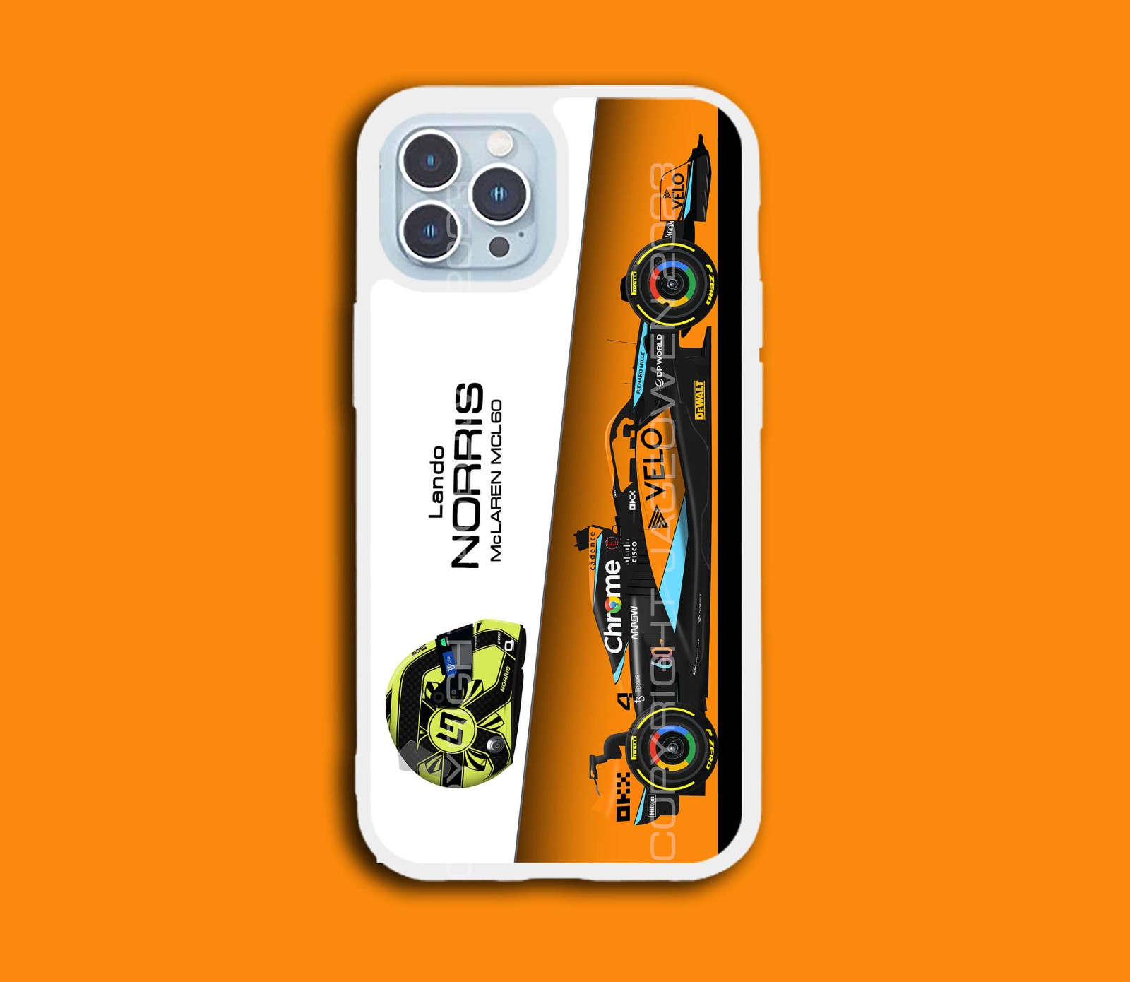 Lando Norris Phone Case. A selection of Lando Norris' McLarens from 2021-2025, printed in-house onto rubber phone cases. For iPhone/Samsung Galaxy. Note - Colours may vary due to different monitor/phone/tablet screen settings.
