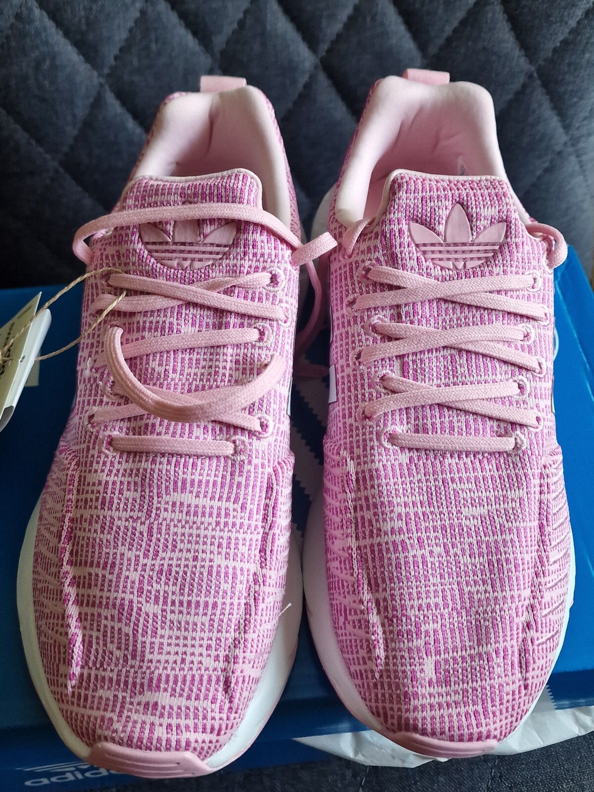 The Adidas Originals Swift Run 22 Junior Girls Women's Trainers in pink, UK size 5.5 (EUR 38.5) are a stylish and comfortable choice for active women. Made with a canvas fabric type and featuring a rubber outsole, these sneakers offer cushioning, breathable comfort, and adjustable fit. Perfect for various activities like walking, cross-training, crossfit, and basketball, these trainers are part of the Adidas Original product line and showcase the iconic logo accent. Ideal for all seasons, these trainers combine sporty style with practical features, making them a versatile option for any occasion.
