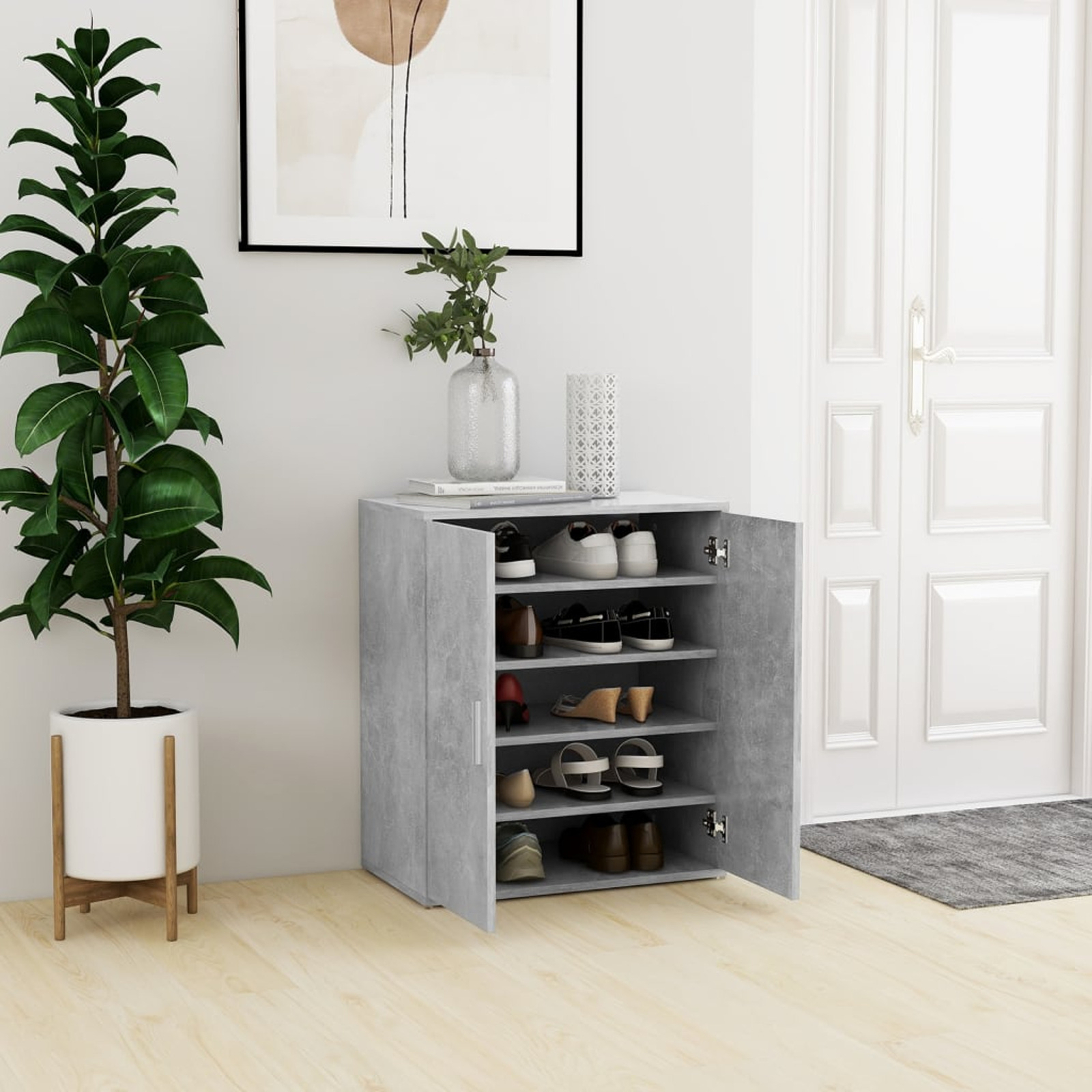 You will no longer be annoyed by shoes cluttering your floor. This hall cabinet is made of engineered wood, exceedingly and sturdy. The shoe rack has 5 Shelf, providing ample space for keeping your shoes well organised.
