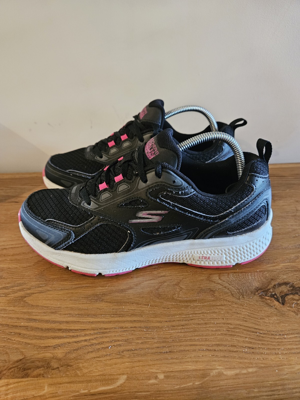 Skechers Go Run Consistent Black, Pink and White Trainers UK Size 4.5 Comfortable and lightweight- perfect for running, the gym and casual wear Good condition - no marks, stains or damage. Soles are quite worn (see pictures), however they have not thinned and still have plenty of wear left.