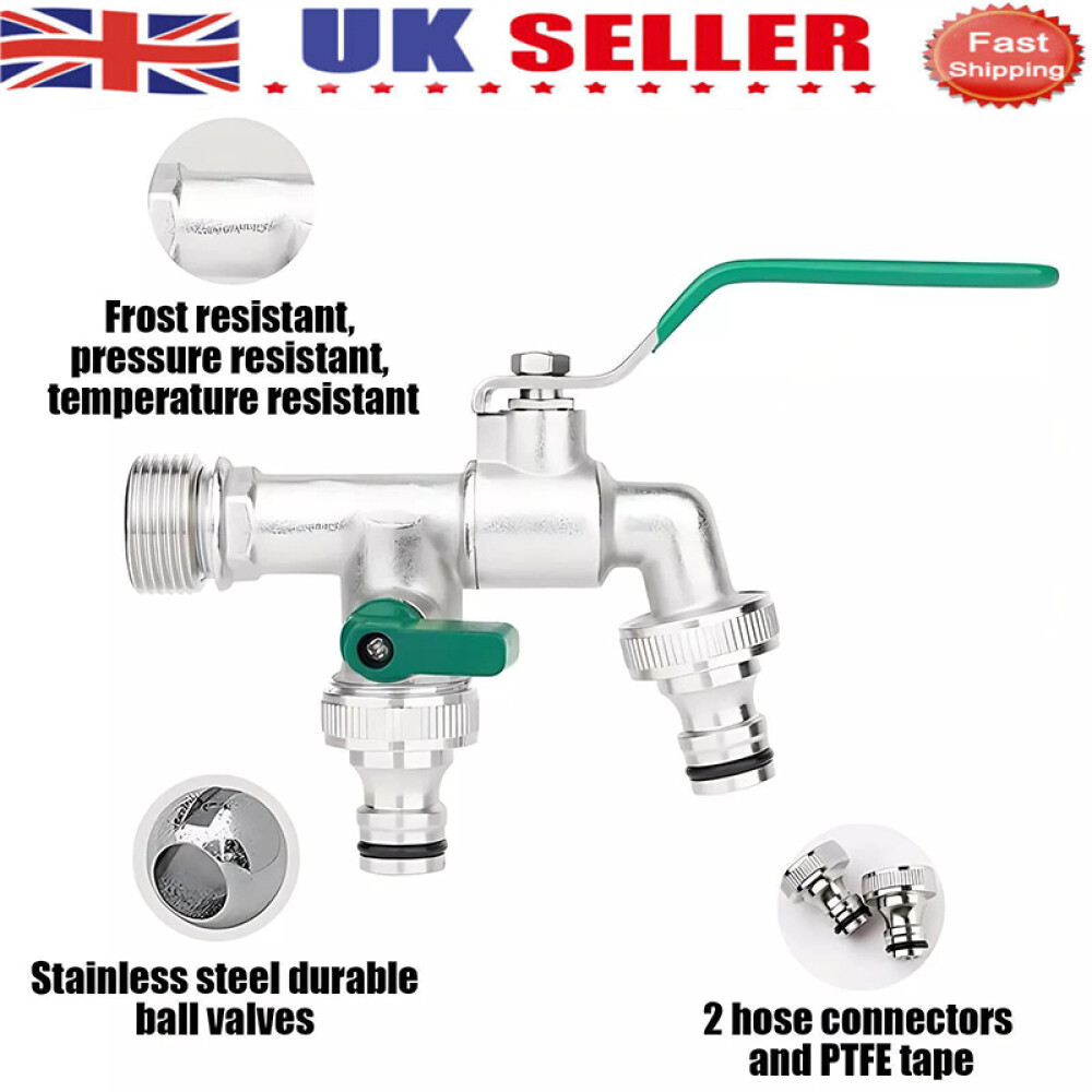 3/4" BSP OUTLET & 1/2" INLET LEVER DOUBLE OUTLET GARDEN WATERING TAP FAUCT 2-WAY