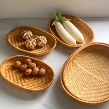 Bamboo Round Serving Tray Hand Woven Wicker Storage Basket Tray Home Decor