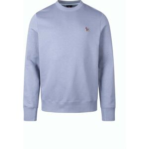 This PS Paul Smith sweatshirt for men in size large is a stylish light blue zebra jumper made from cotton jersey fabric. It features a crew neck and long sleeves, making it perfect for the autumn, winter, and spring seasons. The regular fit pullover sweatshirt also includes the designer logo as accents, reflecting the designer theme of the Paul Smith brand. Ideal for casual wear, this sweatshirt is a versatile addition to any man's wardrobe. Small fabric pull and a faint stain on the elbow that's not very noticeable.