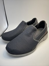 These Relaxed Fit trainers in size 10UK have a low top design with a lace-up closure. They feature a black textile upper with memory foam insoles for comfort. The trainers are part of the Skechers Relaxed Fit product line, suitable for walking and everyday wear, with a fabric outsole. Perfect for going out or sports activities.