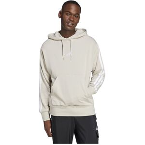 This is a black Adidas sweatshirt featuring the brand's signature three-stripe design along the shoulders and sleeves. The sweatshirt has a classic crew neck and is made from soft, comfortable fabric ideal for casual wear. It offers a relaxed fit, complemented by ribbed cuffs and a ribbed waistband for a snug fit. The iconic Adidas logo is subtly placed on the left chest, adding a touch of sporty style. Paired with light blue jeans, this sweatshirt creates a versatile, everyday look.