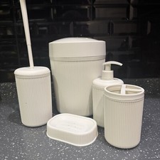 Bathroom Accessories Set Includes:1 Soap Dispenser, 1 Toothbrush Holder, 1 Toothbrush Cup, 1 Soap Dish. 1 Piece Toothbrush Holder. 2 Pieces Toothbrush Cup. 1 Piece Soap Dispenser. 1 Piece Soap Dish. We'd like to settle any problem in a friendly manner.