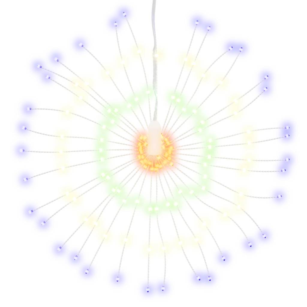 Create a festive atmosphere around your house during Christmas with the starburst light! Multi-function remote control: The energy-saving LED starburst light has 8 different lighting effects (combination, in wave, sequential, slow glow, chasing/running water, slow fade, twinkle/flash and steady on), you can switch the lighting modes with the remote control (Battery not included. Use CR2025 coin cell battery) to create different holiday atmospheres. High flexibility & easy to DIY: The Christmas lighting is made of good-quality flexible copper wires, making it easy to bend into any shapes you like, such as bouquets, fireworks, etc. Timing function: The firework light has a timer button on the remote control that allows you to control the timing of the lights.