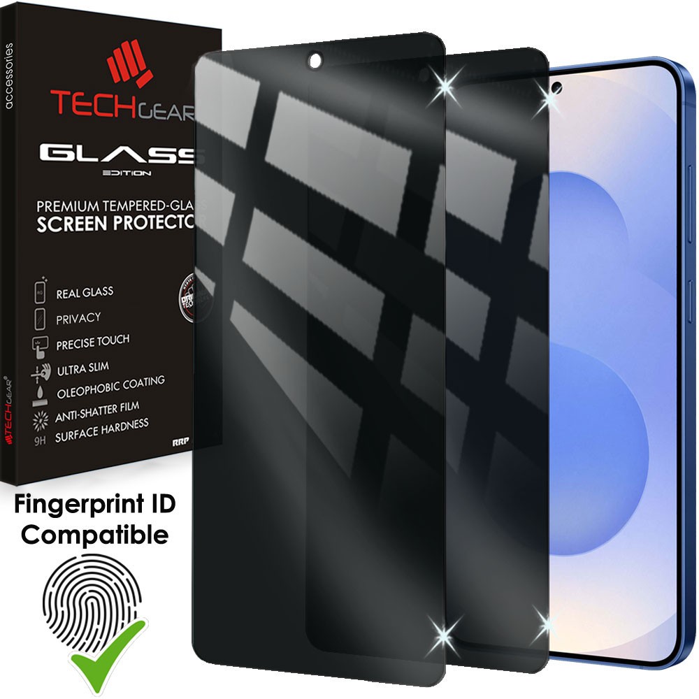 Samsung Galaxy S26 / S26 Plus Privacy Anti-Spy Tempered Glass Screen Protector – 100% Finger ID Compatible, by TECHGEAR. TheSamsung Galaxy S26 privacy tempered glass protector andGalaxy S26 Plus privacy screen protector are manufactured using tough9H hardness glass.
