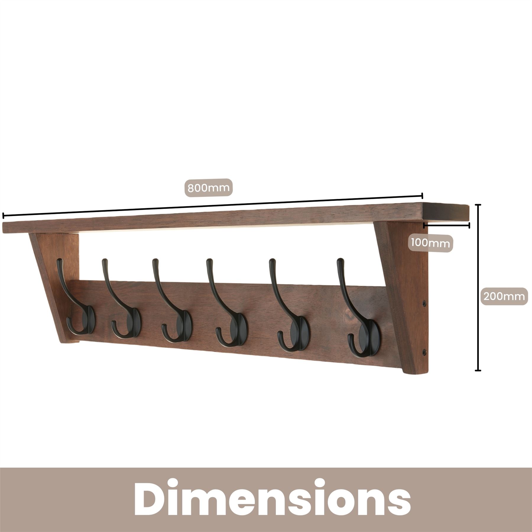 Ideal for classic or rustic interiors, it transforms any hallway, kitchen, bathroom, or bedroom into a stylish and organised setting. TRADITIONAL STYLE & UTILITY - A classic wall-mounted unit featuring six double hooks and a wide top shelf for hanging and display.
