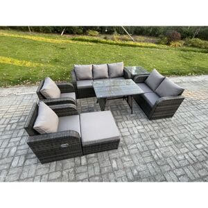This PE rattan outdoor corner sofa set is a great addition to patio or garden, made of high quality PE rattan and durable galvanized steel construction for sturdiness and long lasting.and this garden furniture set can be put Outdoor all year round. Set Dimensions: • 1 x Oblong Coffee table: 85L x 50W x 37H cm • 2 x Small fully assembled footstools :40L x 40W x 34H cm • 1 x 3 seater sofa with two arm : 170L x 69D x 79H cm • 1 x 3 seater sofa with single arm: 160L x 69D x 79H cm Dark grey mixed rattan with dark grey fabric .Color may some difference due to light or monitor .we are unable to return the item due to color problem . Items Comes Flat Packed And Easy Assemble,Sturdy Galvanized Steel Tube Metal Frames With Powder Coating To Prevent The Rust Flat PE Rattan Completely Made By Hand, 5mm Thickness transparent Tempered Glass With Sucker On Surface To Prevent Sliding Low Maintenance ,Removable Cushion Cover And Easy Move To Different Place.Pls Keep the Cushion Indoor Or put on With