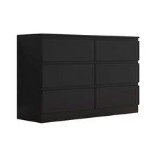 This Large 6 Drawer Chest of Drawers from the Hales Black Range is a simple yet sleek selection of contemporary furniture. This Range is made of manufactured wood and metal. It comes with a sleek Black finish, Gold metal handles. Items in this Range come with fluted detailing to the drawer fronts. Each of the six generously sized drawers glides smoothly on metal runners, offering ample space for all your sartorial essentials. The elegant ribbed detail and luxe gold handles add a touch of glamour, making it a statement piece that combines style with practicality. Whether it's a country house chic or a minimalist urban apartment, this Hales Black chest brings a dash of glamour to your space. Upgrade your bedroom storage with this stylish piece! Part of the Hales Range, there are a variety of matching items available, including bedsides and a wardrobe in this design. Would you like to see similar items? Browse our full Hales Black Range for more ideas.Gorgeous Black and Gold Bedroom Furniture...This Black and Gold Chest of drawers is not only stunning but also practical, ideal for storing clothing, linens, night time essentials and more keeping your home tidy and organised. This chest comes with six spacious drawers and a soft black finish making them perfect for any room and interior style! Their beautiful gold or rustic black handles are perfect for blending in with your existing decor pieces and making your accessories stand out against it’s black canvas! As well as ample display space on top of them, perfect for Candles, Vases, Photo frames and more! This is ideal for Living rooms and bedrooms to have all of your must needed accessories at arms reach! We have more items available in this range and it is also available in Black. Browse our Chest of drawers category for more ideas! This chest comes with your choice of either gold handles or rustic black handles!