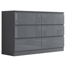6 Drawer Chest of Drawers Grey Gloss Front Large & Deep Sideboard Matt Frame