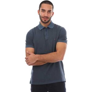 Mens Tommy Hilfiger Garment Dye Regular-Fit Polo Shirt in blue.- Polo collar.- Short sleeves with ribbed cuffs.- Partial button placket.- Embroidered chest flag.- Regular fit.- Ref: MW0MW34757DAF