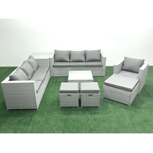 This classic sofa set can accommodate 8 peoples and has a comfortable and soft cushion back, made of new premium dark grey rattan that will withstand British weather .Pls kindly leave your mobile number at checkout for not delaying your shipment . Set Dimensions: 2 x Side coffee table 65L x 65W x 66H cm; 2 x Reclining Chairs: 74L x 67W x 79H cm; 2 x 3 seater Sofa Size: 177W x 67D x 79H cm; 1 x Oblong Coffee table: 105L x 50W x 48H cm; Dark grey mixed rattan with dark grey fabric .Color may some difference due to light or monitor .we are unable to return the item due to color problem . The 2 armchairs are adjustable, you can adjust the inclination of the chair back from 90-130 through the button .the product is delivered on pallet, to kerbside only Fimous Wicker PE Rattan Sofa Set Outdoor Patio Garden Furniture with Reclining Chair Coffee Table 2 Side Tables Dark Grey Mixed