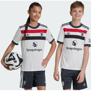 A century ago, vertical stripes were a familiar addition to Manchester United away shirts. For the 23/24 season, adidas dips into the club's DNA to produce a football jersey with a design that looks the part on and off the pitch. This juniors' version of the shirt was created to keep young fans comfortable with moisture-absorbing AEROREADY and breathable mesh panels. Standing out over those stripes, an embroidered club badge signals your support.Made with 100% recycled materials, this product represents just one of adidas' solutions to help end plastic waste. - Regular fit - Ribbed crewneck - 100% polyester (recycled) - AEROREADY - Mesh side inserts - Droptail hem - Manchester United embroidered crest Shipped by adidas