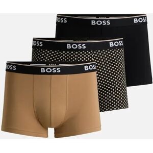 Featuring ‘dynamic stretch’ for a comfortable, flexible feel and excellent fit, these Boss Plain Cotton Stretch Trunks have a soft and smooth weave, with chafe-resisting flat overlocked body seams throughout. These 95% cotton rich jersey fabric trunks come as a triple set pack. The trunks have a low waist, with elastic waistbands that feature an interwoven Hugo Boss logo design to give them their distinctive looks. The trunks are no fly style with a supportive, shaped double layer pouch and have shorter length 6cm inseam legs.