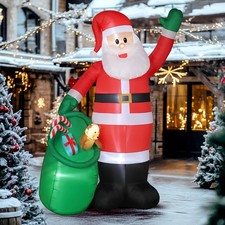 Bring festive cheer to life with this whimsical Christmas inflatable! Featuring a joyful Santa Claus riding a friendly polar bear, this eye-catching display captures the magic of the season. Santa waves happily while carrying a large sack of gifts, ready to spread holiday joy. The polar bear adds extra charm with a playful side-to-side head motion, pausing for 10 seconds on each side to create a lifelike, animated effect. Perfect for gardens, patios, or front yards, this delightful scene warmly welcomes guests with playful movement and timeless Christmas spirit. Living and Home Christmas Inflatable Santa Claus Riding Polar Bear with LED Light