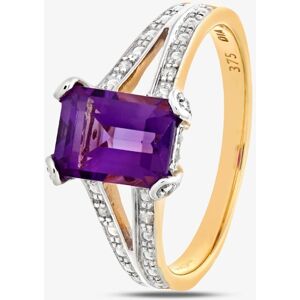 Gold Impression 9ct Yellow Gold Rectangular Amethyst & Diamond Split Shoulder Ring PR06767Y AM K