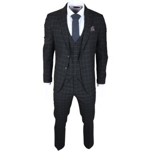 Truclothing Mens Black 3 Piece Tweed Suit Peaky Blinders 1920s Gatsby Classic Tailored Fit - Size 52 (Chest)