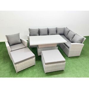 This patio corner sofa set can be used both indoors and Outdoor,with high quality PE rattan and durable galvanized steel construction for sturdiness and long lasting. Outdoor garden furniture can also be placed on the patio or balcony,The design of this rattan furniture is a perfect blend of country chic and modern minimalism, adding an elegant touch to your house. Set dimensions: •1 x 3 Seater sofa with two arm : 170L x 69W x 79H cm •1 x 3 Seater sofa with single arm: 160L x 69W x 79H cm •1 x rising dining table: 140L x 80W x 68/48H cm (height up 68,down 48) •2 x Big Footstool :65L x 65W x 34H cm •1 x Chair: 74W x 69D x 79H cm Light Grey Mixed rattan with dark grey fabric .Color may vary due to light or monitor .we are unable to return the item due to this problem .Please consult before purchase if you have requirment on color saturation. Table Can Be Used Both For Coffee Or Dining Table,Great Price Compared With Other Online Or Offline Store For Rising Table Set Items Comes Flat