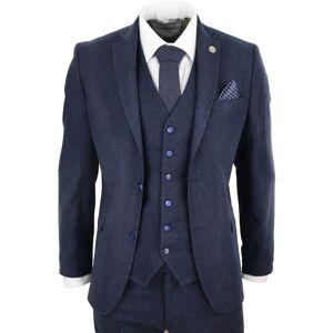Truclothing Mens Blue Wool 3 Piece Suit Double Breasted Waistcoat Tweed Peaky Blinders 1920s - Navy - Size 36 (Chest)