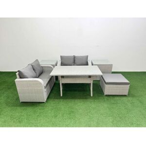 This deluxe Garden furniture set adds decoration to your courtyard, deck, backyard, porch, and even swimming pool, using high quality PE rattan and durable galvanized steel construction, which can withstand the bad weather in the UK and can be easily combined into different configurations according to your needs at any time. Set Dimensions: • 2 x Love Sofa Size: 124W x 67D x 79H cm •2 x Side table :65L x 65W x 66H cm •1 x Big footstool :65L x 65W x 34H cm • 1 x Rectangular Coffee Table :105L x 50W x 48H cm Light grey PE rattan with dark grey fabric .Color may some difference due to light or monitor .we are unable to return the item due to color problem . Items Comes Flat Packed And Easy Assemble,Sturdy Galvanized Steel Tube Metal Frames With Powder Coating To Prevent The Rust Flat PE Rattan Completely Made By Hand, 5mm Thickness transparent Tempered Glass With Sucker On Surface To Prevent Sliding Low Maintenance ,Removable Cushion Cover And Easy Move To Different Place.Pls Keep the