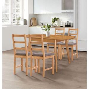 Ideal for space-saving when not in use, this medium sized butterfly dining table offers practicality, without the need to have a full-sized dining table on display at all times and cluttering the dining room. Seating four people, with room to spare when not extended, this extending table can comfortably seat up to six people without feeling crowded. The extension leaf stores neatly under the table top when not in use, for minimum fuss and maximum practicality. The table legs is crafted from solid rubberwood which guarantees durability. The table top is made of MDF laminated with real oak veneer for attractive appearance. The table has a light oak finish and is coated with a final layer of natural lacquer, which serves to not only protect the wood from bumps and stains, but also showcases and enhances the wood's natural patterns and colouring for a truly stylish and durable piece which will be in your family for years. The table length is 106cm when the leaf is not in use, and 136cm
