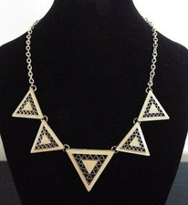 PALE PEACH ENAMEL ON GOLD COLOUR METAL TRIANGLES ON A 16" NECKLACE