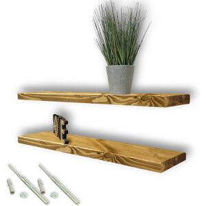 Eco-Friendly Material - Each piece of our floating shelves is made from reclaimed timber, carefully handpicked for its unique traits. Though each wood piece is unique, we believe it only adds an extra touch of charm to your furniture.Robust & Reliable - Our custom-made rustic wooden shelves are designed to bear weight once installed properly. You can choose from seated or flat-lipped black L-brackets. We provide black powder-coated brackets as standard, with screws and brackets included.Hand Crafted Shelves - The shelves are treated with Briwax “Rustic Pine” wax as standard, resulting in a natural rustic finish. Each wall-mounted wooden shelf is meticulously handcrafted, embodying more than just furniture – they are art pieces.Superior Rustic Shelves - These versatile floating shelves have ample space for books, accessories, seasoning bottles, trinkets, and more. The rustic wooden shelves, complemented by the sleek, robust black steel frames, make for an excellent addition to any room.Ideal Gift Option - These sturdy, easy-to-install, and elegantly designed shelves are a splendid addition to any home. With their capability to beautifully display collectibles, our wooden shelf boards make a perfect gift for your loved ones.Complete Kit - Includes two wall shelves, four metal brackets complete with screws, and assembly instructions. Brambly Cottage Size: 4.5cm H x 110cm W x 22cm D, Finish: Antique Pine