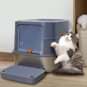 Bingo Paw - BingoPaw Large Cat Litter Box with Scatter Shield and Scoop, High Sided Cat Litter Pan Stainless Steel