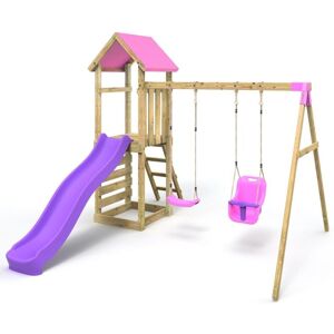 Rebo have added to their extremely popular wooden playset range with the new wooden climbing frames, designed and made in the UK these robust adventure play sets will make an exciting addition to any garden and keep the little explorer in the family entertained for hours. Made from pressure treated timber these sturdy new Active climbing frames are built to last and will provide years of joy, proving children with a way to keep fit and healthy while firing their imaginations and helping them burn off that excess energy they always seem to have. The climbing tower has a rock wall as well as wooden ladder to access the slide platform, which includes an 8ft slide made from durable injection moulded plastic. The Rebo range of wooden adventure playset are available with a choice of swing configurations, enabling you to find the perfect climbing frame for your family. Please Note: Tools are required in the assembly of this item including a drill, wood is not pre-drilled but full