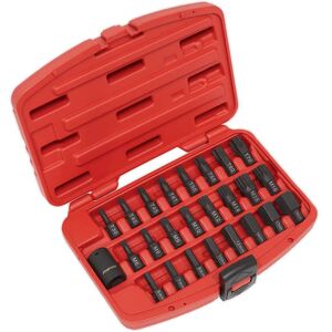 Heavy-duty Chrome Molybdenum impact hex, TRX-Star* socket bits and TRX-Star* female socket bits. Suitable for commercial vehicle applications. Supplied in storage case. Heavy-duty Chrome Molybdenum impact hex, TRX-Star* socket bits and TRX-Star* female socket bits. Suitable for commercial vehicle applications. Supplied in storage case.