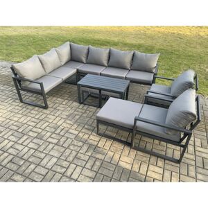 This deluxe aluminium outdoor sofa set is a great addition to your patio or garden, made of high quality Alloy aluminium and powder coating for sturdiness and structural durability. Set Dimensions: 1 x Left Sofa with single armrest: 125W x 70D x 78H cm; 1 x Right Sofa with single armrest: 125W x 70D x 78H cm; 1 x Corner Sofa70L x 70W x 78H cm; 1 x Armless Sofa Size: 60L x 70W x 78H cm; 2 x Chair Size: 74L x 70W x 78H cm; 1 x Big footstool 60L x 60W x 35H cm; 2 x Fully Assembled Stool Size: 40L x 40W x 36H cm; 1 x Oblong Coffee Table97L x 52W x 51H Items Comes Flat Pack And Easy Assemble, Alloy Aluminium Frame With Powder Coating To Prevent The Rust, This Set Was Completely Made By Handmade, Aluminum Table Top Without Glass .9 cm; Thick Seat Cushion With Soft Pillow Back Cushion Gives You More Comfort Move To Different Place. Pls Keep the Cushion Indoor Or With Rain Cover When Not In Use . Keep The Furniture With Rain Cover If Not Use For Long Time .the product is delivered on pallet, to kerbside only. Fimous Aluminum 11 Seater Outdoor Lounge Corner Sofa Set Garden Furniture Sets with Oblong Coffee Table 2 Chairs 3 Footstools Dark Grey