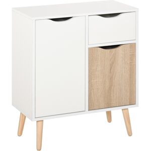 "Keep your home stylish and the space tidy: look no further than this freestanding cabinet from HOMCOM. Cut to a clean boxy shape for simplicity, it comes with two cupboards and a top drawer, giving a moderate amount of storage. The white finish is clean, with the coloured door adding a unique point of difference so it stands out gently. Made from particle board, this piece is durable, finished with small wooden legs so it stands steady and back straps so it doesn't topple over. Specifications: • Color: Brown • Material: MDF, Particle Board • Overall Dimension: 60W x 30D x 72Hcm • Drawer Inner Size: 22W x 23.5D x 11Hcm • Large Cabinet Inner Size: 27.5W x 27D x 25/25Hcm • Small Cabinet Inner Size: 27W x 29D x 34.5Hcm • Weight Capacity: 50kg (whole), 5kg (drawer/shelf) • Item Label: 837-116ND Features: • Cut-out handles on drawer and cupboards, easy to open and close • Four wood legs for balance, elevates the base for extra protection • Clean Scandinavian style in boxy shape. White