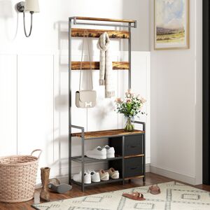 This versatile coat rack features 8 coat hooks and 2 drawers, allowing you to easily store shoes, bags, keys, and all your essentials. Made with a high-quality metal frame finished with rust-resistant paint and topped with selected particleboard, this coat rack is durable and exudes a rich industrial-rustic feel. The shelves below the drawers can be used to store shoes, keeping your home neat and tidy. Borough Wharf Colour: Black