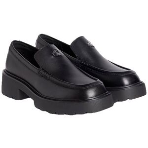 CALVIN KLEIN JEANS Santiago Combat LoafersStep into a new era of urban sophistication with the CALVIN KLEIN JEANS Santiago Combat Loafers. This exceptional piece of footwear masterfully redefines the classic women´s loafer, infusing it with a bold, contemporary edge that is unmistakably Calvin Klein. Designed for the modern woman who commands attention and values both style and substance, the Santiago loafer is more than just a shoe—it´s a statement of confidence and forward-thinking fashion.Experience the perfect fusion of timeless design and rebellious spirit. The Santiago loafer elevates the traditional penny loafer silhouette with a substantial, chunky platform and a rugged combat-style lug sole. This commanding foundation not only adds significant height and a powerful profile but also ensures superior traction and stability, making it a practical choice for navigating the city streets with poise. The slip-on design offers the ultimate in convenience, allowing for effortless wear whether you´re heading to the office, meeting friends for brunch, or embarking on a weekend adventure.Crafted from premium, high-quality Leather, the upper of the Santiago loafer boasts a smooth, refined finish that speaks to its luxurious origins. The meticulous construction and attention to detail are evident in every stitch, from the classic round toe that provides ample room and comfort, to the iconic penny-keeper strap across the vamp. Subtle yet distinctive CALVIN KLEIN JEANS branding serves as a hallmark of authenticity and a nod to its prestigious heritage in designer fashion.The true benefit of the Santiago Combat Loafer lies in its unparalleled versatility. It effortlessly bridges the gap between casual and formal, edgy and elegant. Pair them with tailored trousers or a midi skirt for a powerful, office-ready look that challenges convention. For a more relaxed, off-duty style, wear them with your favourite straight-leg denim or even a flowing dress to create a captivating contrast of hard and soft aesthetics. These black platform loafers are a foundational piece for any curated wardrobe, offering endless styling possibilities throughout the seasons.Technical Specifications:* Style: Slip-On Combat Loafer* Upper Material: Premium Leather* Toe Shape: Round* Sole: Chunky Platform with Lugged Tread* Heel Type: Platform* Closure: Slip-OnWomen´s leather casual loafer in black with platform.Composition:100% Leather (FWA)