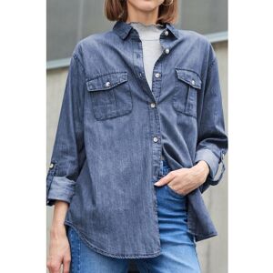High waist denim skirt Buttoned details Convenient pockets Slightly stretchy fabric 85% cotton 15% polyester Machine wash cold tumble dry low Imported Available in sizes XS to L with detailed measurements Material: 100% Cotton