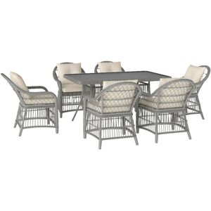 Ensure there’s plenty of sitting space outdoors for friends and family with this six-piece rattan dining set from Outsunny. Made from hand woven PE rattan with aluminum frame underneath, each piece has been built to last, providing solid and reliable use time and again. Including a three-seater sofa, two armchairs, two stools and a large table, it will accommodate up to seven people easily. With plush padded cushions all over, this set has been made with comfort in mind, allowing you to relax for hours on end